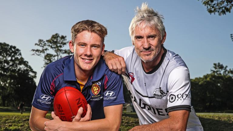 In what must have been a mix of emotion and embarrassment, Jaspa Fletcher watched on as his dad, Adrian – a pretty fair footballer himself – not overly fast, not athletically gifted, but boy did he know how to get the ball – began speaking prior to presenting Jaspa with his number 28 jumper prior to his debut game with the Lions.
